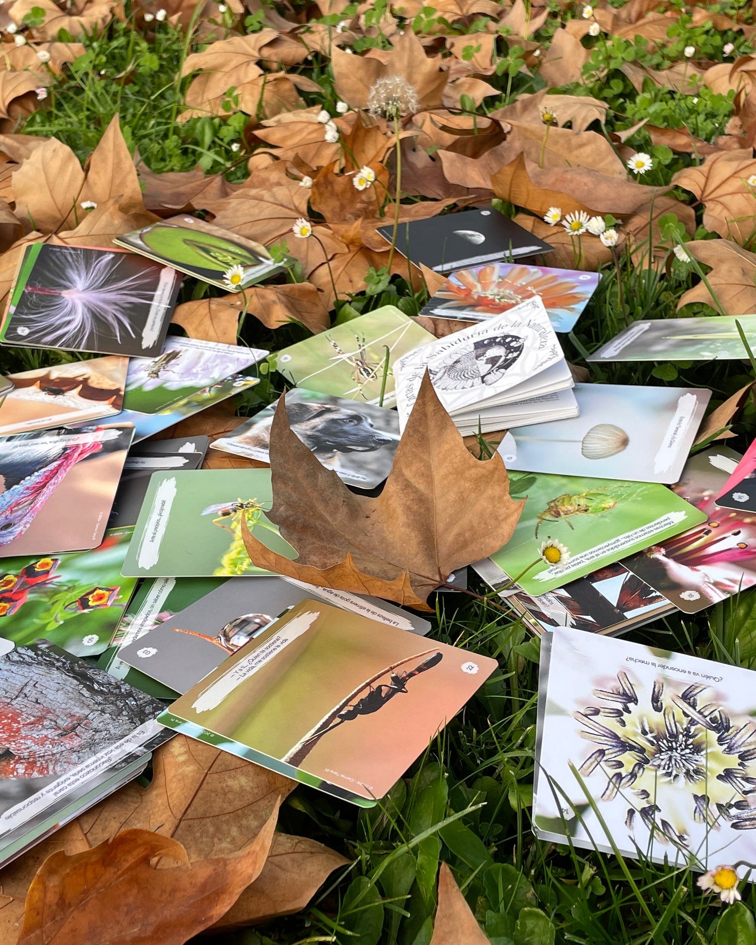 Me llena de gratitud e inspiración poder contar con un juego de estas cartas de “Vida”, donde veo el ojo mágico que tantos años ha captado el pulso de la Sabiduría de la Naturaleza, junto con preguntas y reflexiones poderosas. Un juego de cartas que acompañan a viajar por la Vida misma; observando nuestros procesos y reflexiones vitales. Quién mejor que Carme, para plasmar esta hermosa combinación. Gracias querida Carme por manifestar tu arte y compartirlo! 🙏🏼